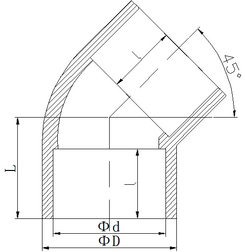 其中“ΦD”表示管件公称外径,“Φd”表示管件公称内径,“L”管件长度,“l”表示管件承插口长度,,1.0MPa=10公斤