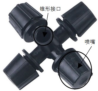 产品介绍:301十字雾化喷头是一种常用的微喷灌水器,相对于旋转和折射微喷头而言,其喷洒半径较小,喷洒雾化效果特别好,多用于温室、花卉灌溉,作物叶面施肥,温室内空气加湿降温等。
